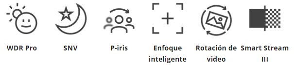 5MP, H.265, 2MP 60cps, WDR Pro, SNV, RBF, puerto GbE