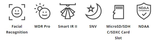 5MP, Facial Recognition, H.265, Up to 10,000 Facial Profiles, WDR Pro, SNV, 50M IR, Smart IR II